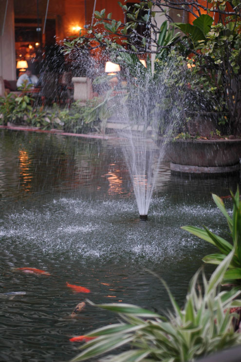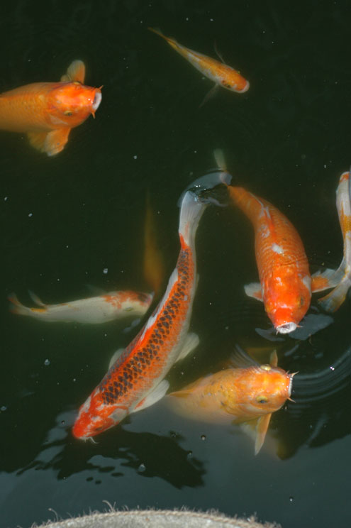 Hungry koi at the Hilton. Don't they look emaciated? Not. |