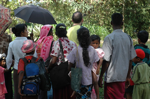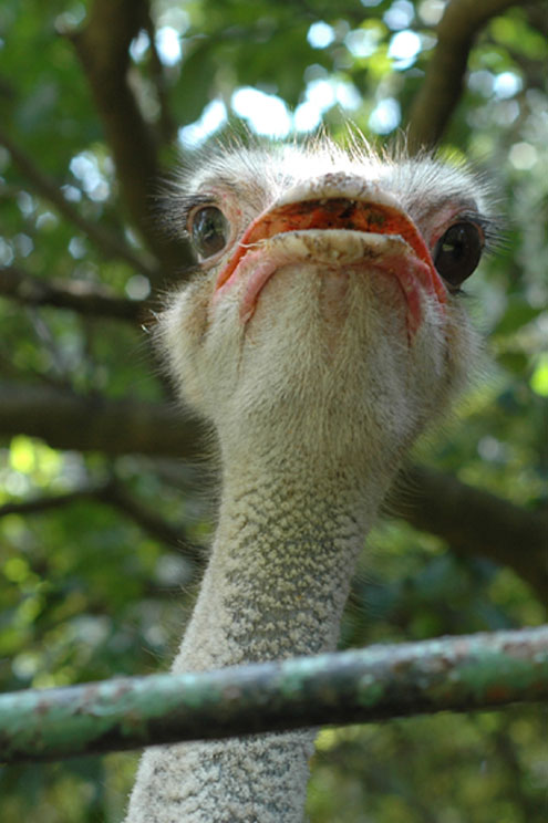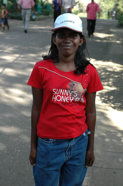 An ostrich checks me out and looks thoroughly unimpressed. | A local cutie-pie who came up to me and said, "Hello, how are you?" with her father's encouragement. I then started to speak to him, praising Sri Lanka (and its cricket team) to the hilt, and suddenly a huge crowd of smiling Sri Lankans had gathered around to listen. Gordon came back from the restroom to find me holding court! We have travelled many places, and I have to say that the Sri Lankans are the friendliest, most helpful people we've met. And they smile more than any people on earth. |