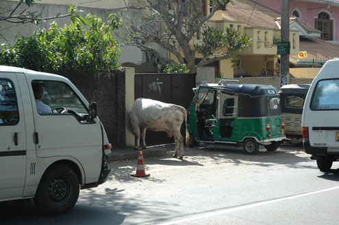 Okay, okay, I know, too much Hilton! But the pond was really pretty. | Crossing the street in Colombo is always an interesting experience. We soon got the hang of being a pedestrian in Sri Lanka. Never let down your guard, and always cross with the locals (as a human barrier!) when possible. And look ALL WAYS. I heard other travellers whining about the driving in Sri Lanka, but frankly, I have seen worse in central America, not to mention southeast Asia. |