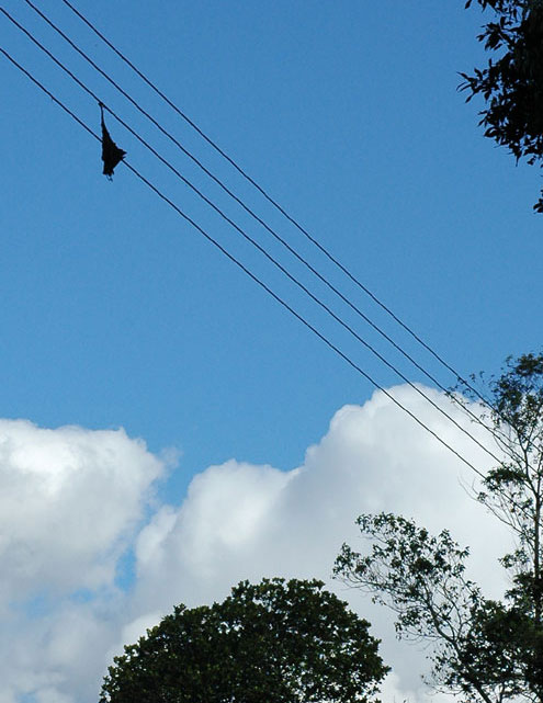 Baaaaaad things happen to fruit bats who decide to roost in power lines in Sri Lanka. This was a sight I saw more times than I could count. Poor little devil!