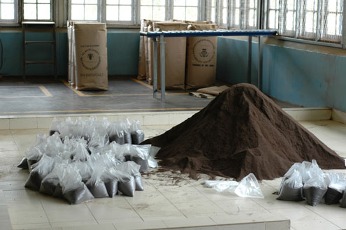 Some tea at the end of its processing ordeal. I think this was "fannings", i.e. not the top quality broken-leaf tea. Basically,this stuff is the dust that goes into yer mass-produced teabags. There are several grades of tea and I found that I am a real fan of flowery brokery orange pekoe. Unfortunately, while we brought home a lot of tea, we didn't bring home enough to last a lifetime. I guess we'll just have to return to Sri Lanka for a visit! |