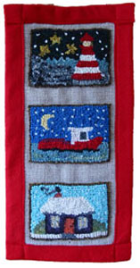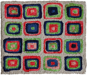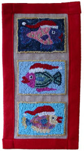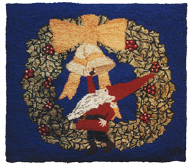 Christmas Elf - (Pillow) 1998 From a commercial pattern; my very first hooking project and the only one I haven't designed myself! |