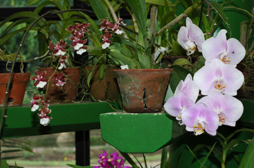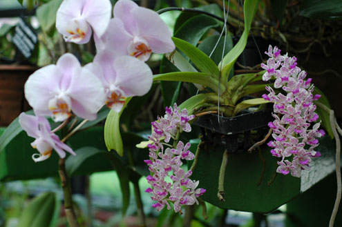 Orchids in the Orchid House. | One of the workers in the Orchid House saw my interest in the flowers and led me around to all the highly-scented ones (of which there weren't many), inviting me to sniff. Some of them had the most amazing scents! I figured he was doing this in hopes of getting a small tip from me, but no, he walked away when we were done. He was just kindly sharing his secrets. So many orchids have no smell; the ones that do are incredible. |