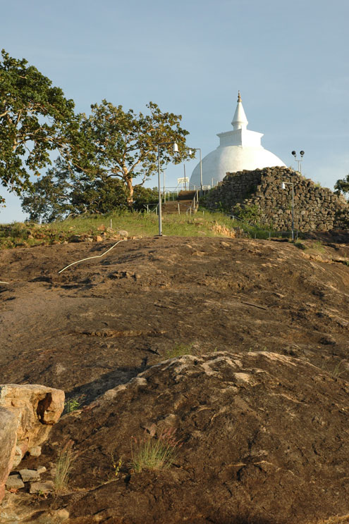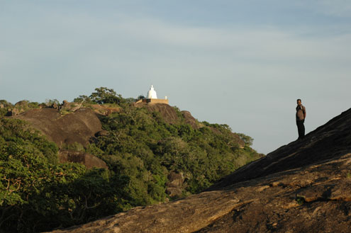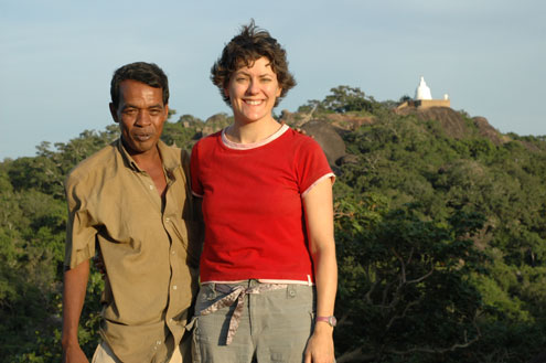 One of the dagobas at Situlpahuwa Buddhist temples, with smiling bystander. |
