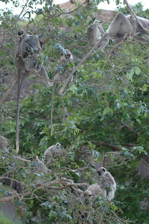 We climbed up to this dagoba, which is one NOT pictured in the first two shots. There was a LOT of monkey poop on the slopes, which Jayantha thoughtfully brushed off. Keep the temple clean! | Grey langur monkeys, wholly unimpressed by us. |